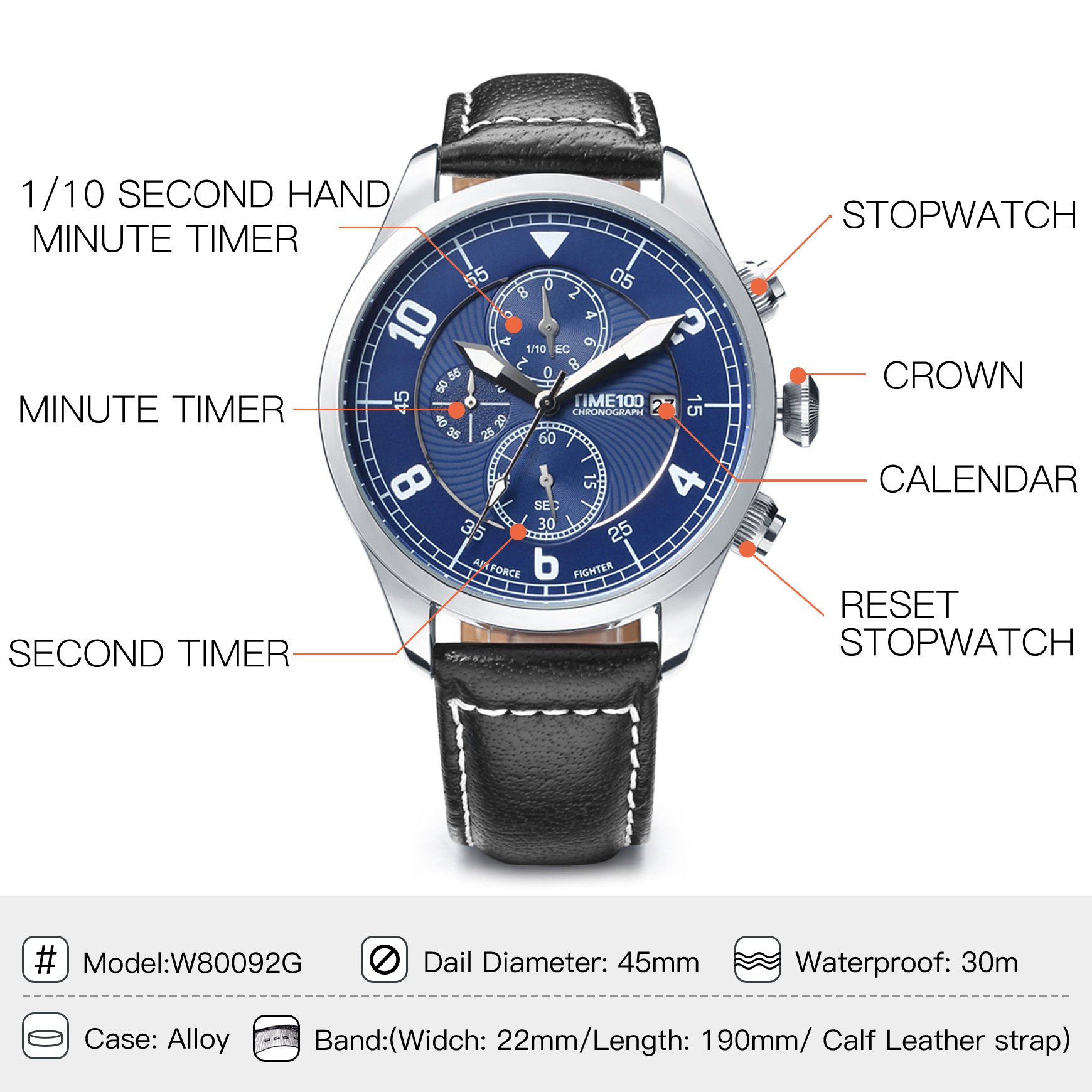 Press the first button on the right, the second sec start the stopwatch, then press this button again to stop the stopwatch.