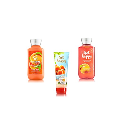 - Includes one each of Bath Body Works GET HAPPY - WHITE PEACH SANGRIA Body Lotion 8oz, Shower Gel 10 oz & Body Cream 8 oz