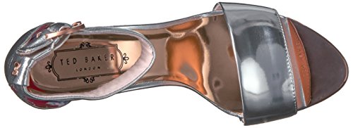 Studio : Ted Baker Publisher : Ted Baker Binding : Apparel Product Description Two strap sandal style with 100mm moon shaped block heel, a statement branded brushed rose gold circular buckle at the ankle strap and with mini metal bow and branded metal toe plate. this style features a soft sheep leather sock and lining, ortholite padding under the sock and a durable tpu branded outsole. 0