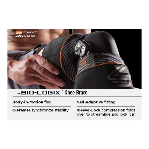 -. Binding : Misc. -. Brand : Shock Doctor -. Color : Black -. Feature : Maximum support for minor/moderate sprains/strains/instabilities during active recovery / Soft tissue support, joint alignment, therapeutic warmth/blood flow / ProP.R.Ioception: Bio-neurological awareness of stress-added support informs muscle to contract to protect itself / For best sizing determine the circumference of the knee by measuring 2" below the center of the kneecap. Small- 12.25-13.25" Medium- 13-14" Large 13.75-14.75" Extra Large 14.5-15.5" -. Label : Shock Doctor -. Manufacturer : Shock Doctor -. ProductGroup : Sports -. ProductTypeName : SPORTING_GOODS -. Publisher : Shock Doctor -. Studio : Shock Doctor -. Title : Shock Doctor Bio-Logix Knee Brace