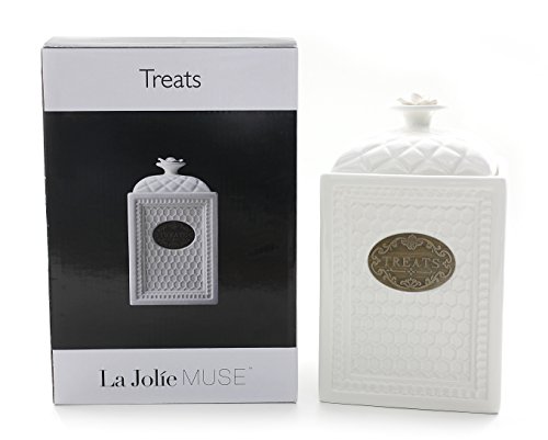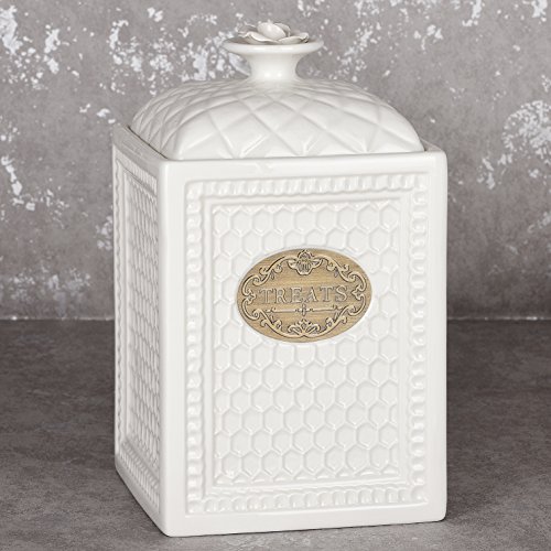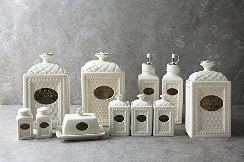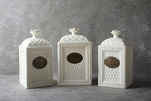 Kitchen Canister Ceramic Food Storage Jar, 67 Ounce with Airtight Lids, for Cookie, Sugar and Flour, Vintage White