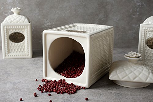 ★MULTI-FUNCTIONAL KEEPER - Ideal for coffee, tea, cocoa, cookies or flour. Perfect for any pantry--so attractive you can display them on the countertop! This treat jar is your source for the widest range of functional, inventive and fun kitchen tools and great ideas put into practice. The rose topped lid allows you to open the keeper with one hand and a silicone seal provides airtight protection.