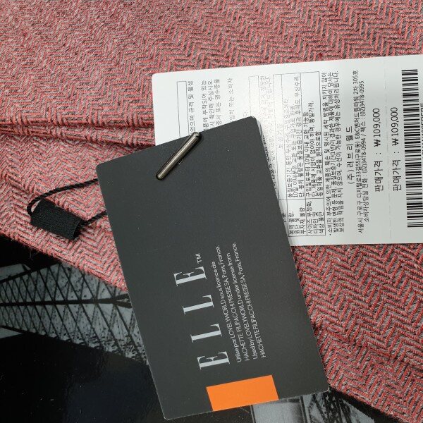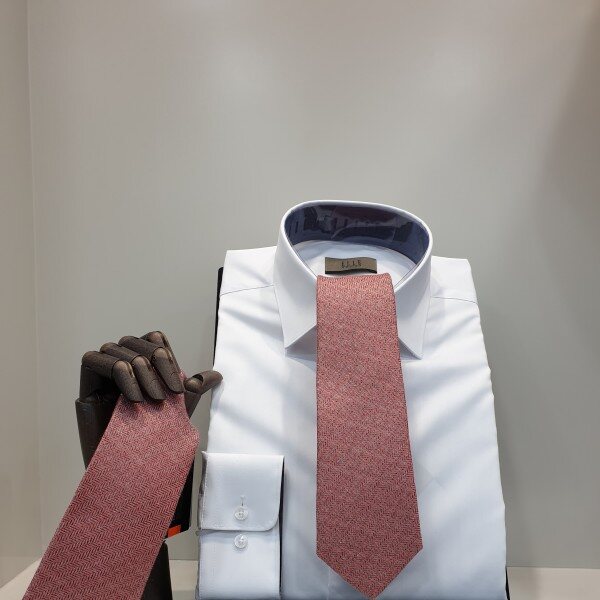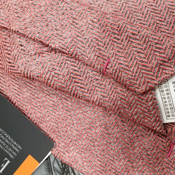 연한주홍 바탕에 사선 빗살무늬 패턴대검폭7cm 슬림형