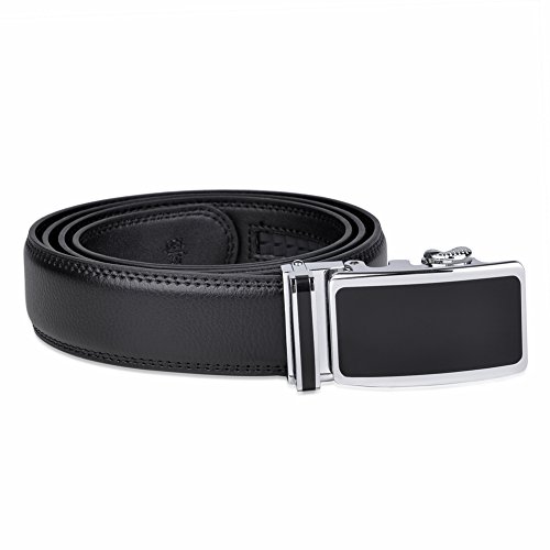 -. Binding : Apparel -. Brand : VBIGER -. Color : Black -. Department : mens -. Feature : Leather. / Durable rubber ratchet. Auto Lock Buckle (Sliding Buckle), No holes in belt. / Alloy buckle, double edge stitching. / 35mm wide strap. Belt length (full length of belt strap):48" (120cm). If you need a longer belt, please choose seller-fulfillment orders and leave us a message. FBA belts don't support to choose sizes. / Removable buckle, you can change belt colors to match your daily style. -. PackageQuantity : 1 -. ProductGroup : Apparel -. ProductTypeName : ACCESSORY -. Title : Vbiger Men's Leather Belt Sliding Buckle 35mm Ratchet Belt Black