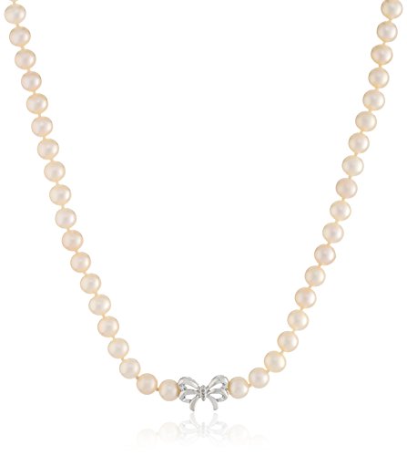 Compliment your feminine and classic style with this freshwater cultured pearl necklace strand. The pearl beads are accented along the bottom by a sterling silver bow that adds a sweetly-polished finish to the design.Feature