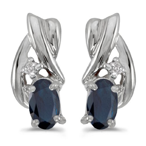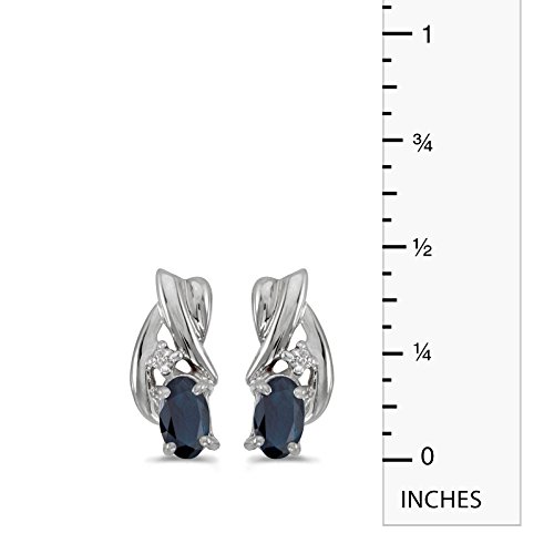 These 14k white gold oval sapphire and diamond earrings feature 5x3 mm genuine natural sapphires with a 0.50 ct total weight and bright diamonds.