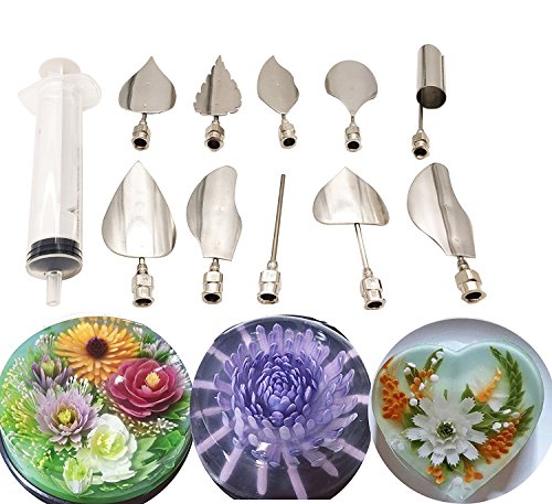 Joinor 3D Gelatin Jelly Art Tools Jelly Cake Stainless Steel Needles Set Of 10 Pieces Coming With One 10ml Syringe Pudding Pastry Nozzles