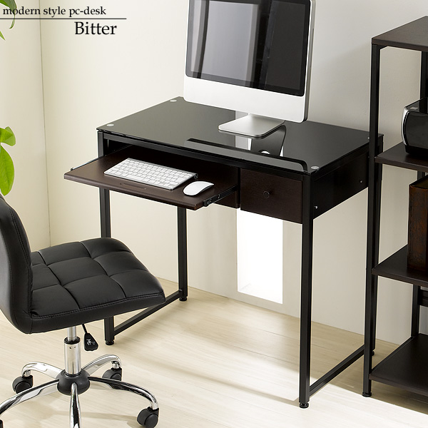 ●ブラックガラスとブラウン木目の組み合わせがモダンでオシャレなPCデスクです。