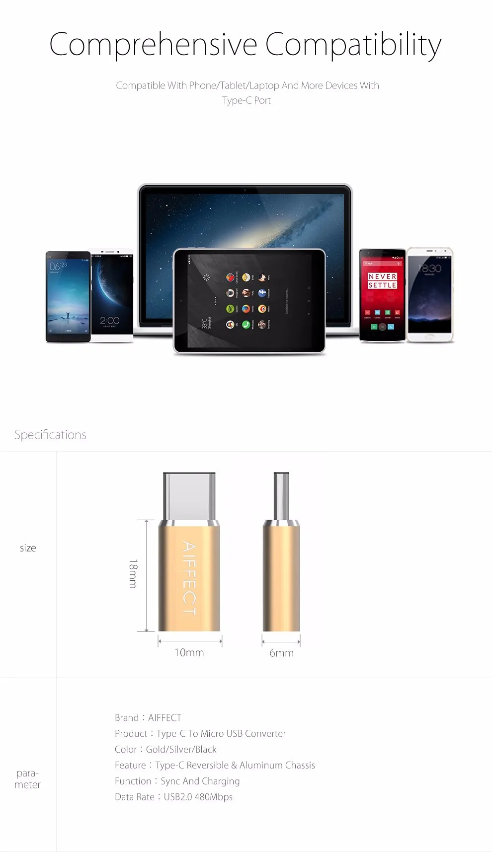 Feature 5:USB Type C to Micro USB Adapter