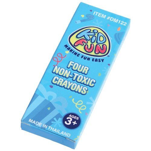 Color a beautiful masterpiece with these crayons. Crayons are an entertaining addition to goody bags or to keep children busy on a road trip. Crayons are our top selling stationery item and a must have for arts and crafts projects. 4 crayons per pack, 72 packs per box. Total of 288 crayons per unit.Feature