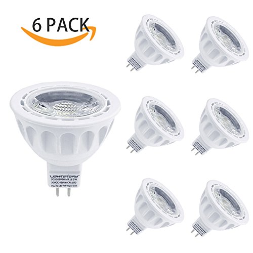 Lightstory MR16 LED Bulbs, 50W Halogen Bulb Equivalent, 12 Volt, 5W 450lm, 3000K Warm White, 40° Beam Angle, MR16 LED Light Bulbs, GU5.3, UL Listed, Non-Dimmable, 6-Pack