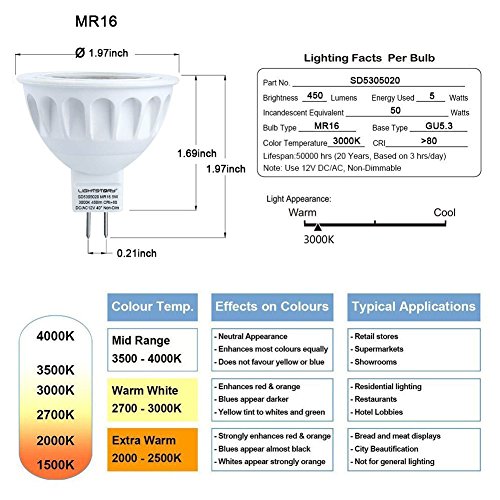 - QUICK & EASY INSTALL: Standard MR16 shape with GU5.3 bi-pin base; perfect for GU5.3 halogen bulb replacement; requires compatible transformer