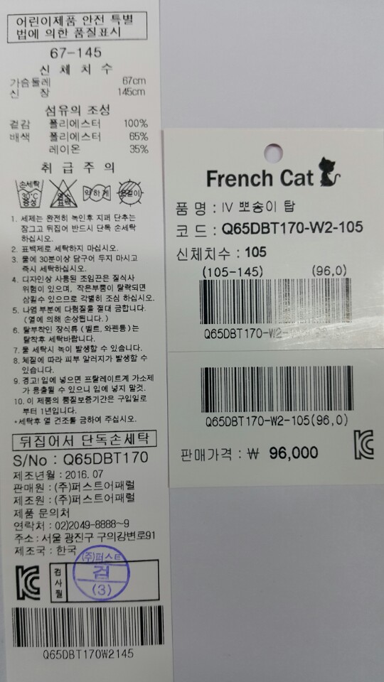 소재-겉감-폴리에스터 100% 안감-폴리에스터 65% 레이온 35%