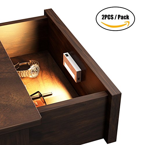 MINI Closet Lights, 3000k Warm White Night Light, IR Sensor Led Under Cabinet Lighting 0.6w USB Charging, Stick-on Wardrobe, Armoires, Drawer, Nightstand, 2-pack