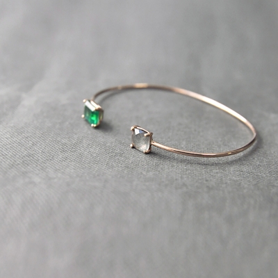 Two Stone Open Bangle GOLD : 14k / 18k Gold