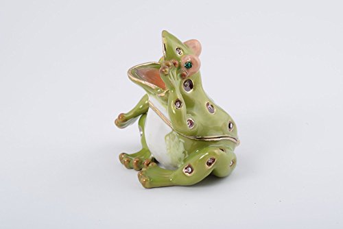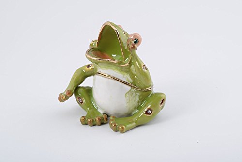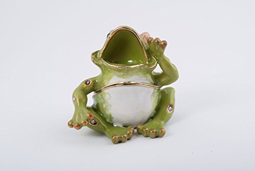 Shouting Sitting Frog Faberge Style Trinket Box Decorated with Austrian Crystals Handmade By Keren Kopal