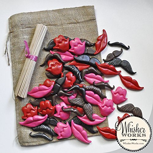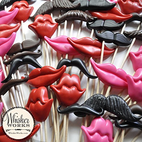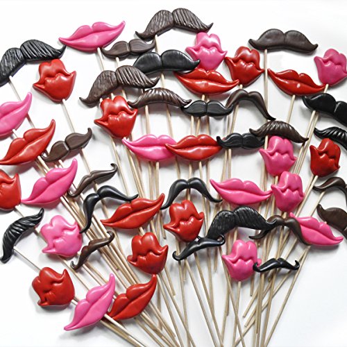 Wholesale Photo Booth Props, Set of 50 Mustache and Smile Props on Sticks - bulk quantity for photobooths, party favors, weddings, receptions, guest favors