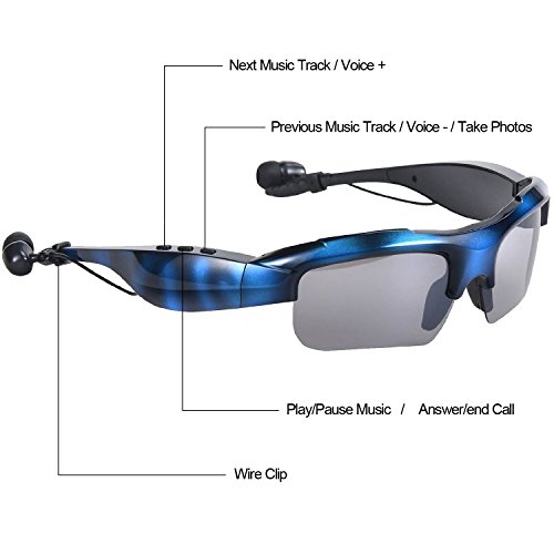 Momoday Sunglasses Digital bluetooth 4.0 Glasses Stereo Headset Headphones with Handsfree Driving Music Player Answer Phone for Android IOS Smartphones and All Bluetooth Device(Camouflage Blue)