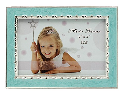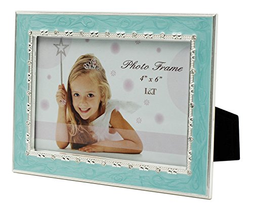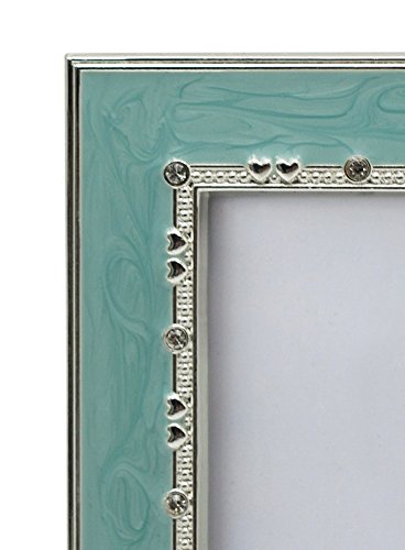 L&T Aqua Blue Enamel Picture / Photo Frame Metal with Silver Plated and Crystals 4 x 6 Inch