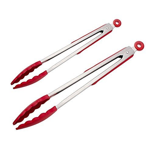 -. Title : Silicone Tongs,Premium quality Silicone Stainless Steel Tongs Silicone Cooking Utensils (9inch & 12inch in Graphite red) by DONGJI