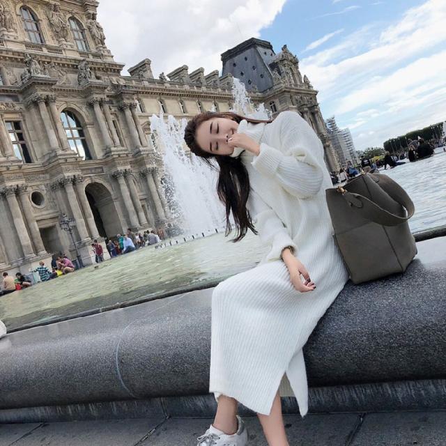 着やすいニットロングワンピース!シンプルデザインでも一枚でおしゃれに着こなせるワンピ♪