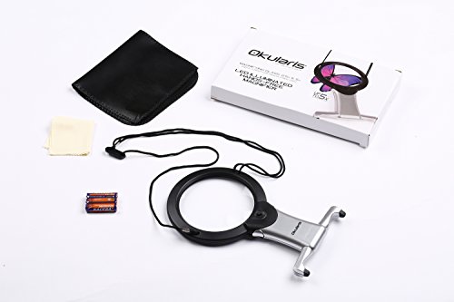 - The Okularis® LED-illuminated Hands-free Magnifier features a bifocal lens ( 5x) with a wide circular viewing area that provides clear, distortion-free magnification (2.5x,).