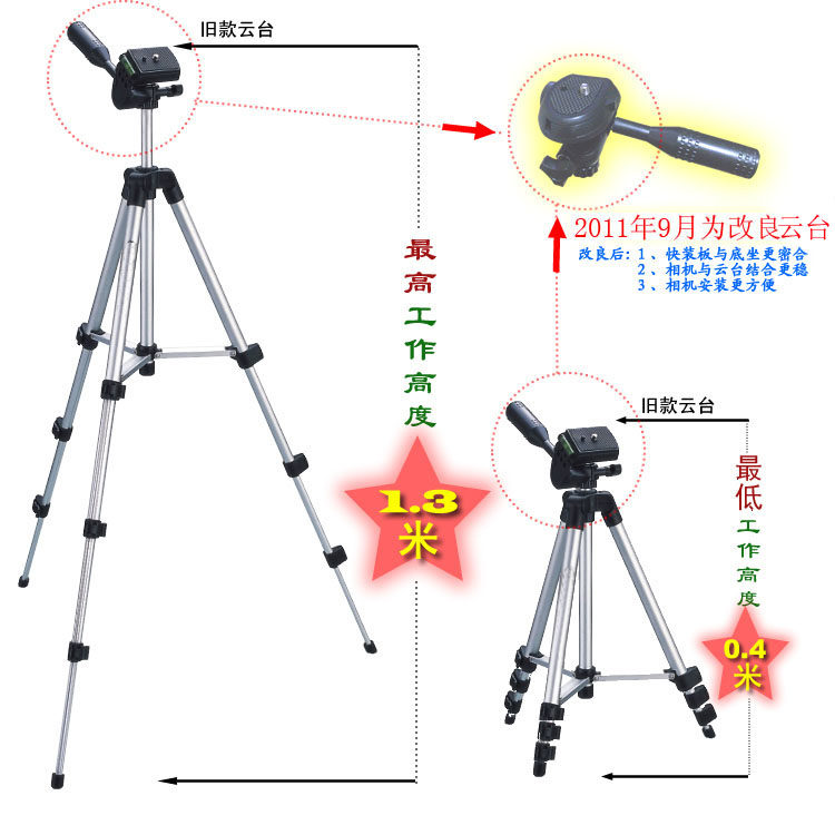This tripod applicable models: Canon (CANON) Nikon (NIKON) Sony (SONY) Matsushita (Panasonic) and other major domestic and international brands of digital camera (card machine) SLR (kit) DV (camera) instrument, such as photography various types of digital video equipment, suited to the camera with a telephoto lens.