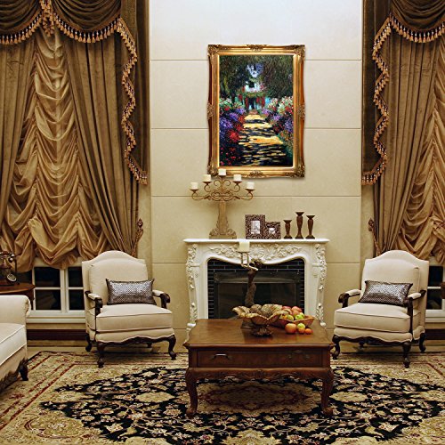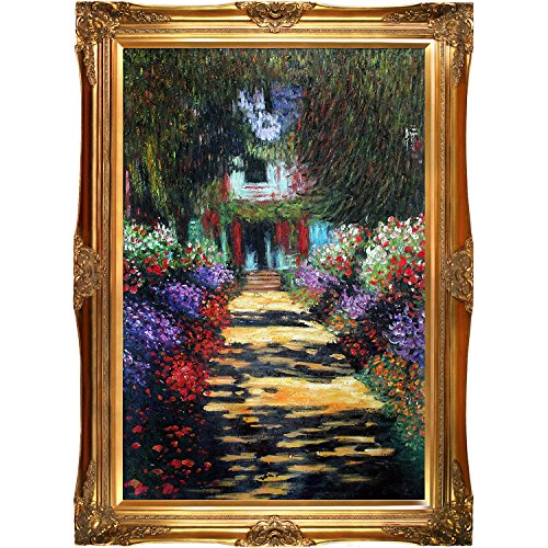 24-inch by 36-inch oil painting on canvasclaude monet’s garden path at giverny will make you feel as if you’re strolling down the artist’s compound’s path on a warm, sunny day. Born in paris, monet was the founder of french impressionism. Many of the subjects of his paintings were located here, which is where he finally settled with his family later in life. With its flowers, trees, water and other aspects of nature, monet was able to gain much inspiration from his surroundings. Originally created in 1902, our artists have carefully recreated this masterpiece to look almost exactly like the original. Its versatile use of color and brush strokes will make this an excellent addition to any room.painting arrives framed in victorian; 4-inch wood frame with gold finish. Exterior dimensions are 32-inch by 44-inchFeature