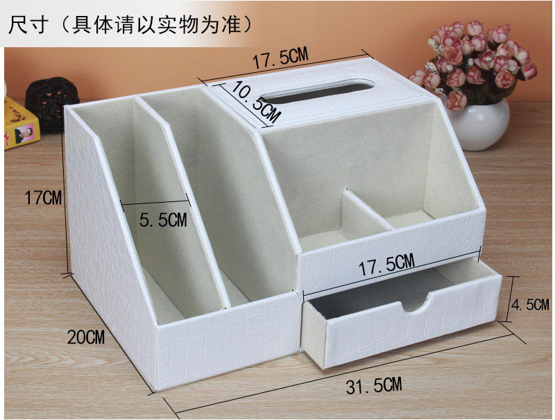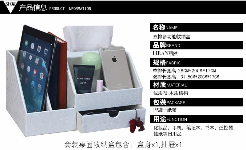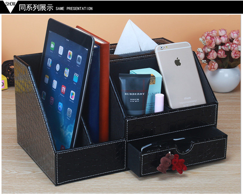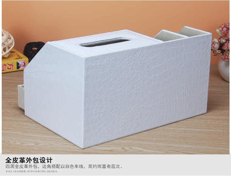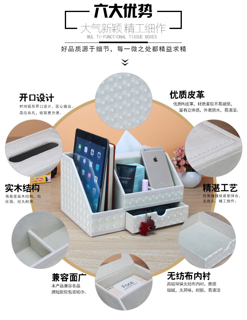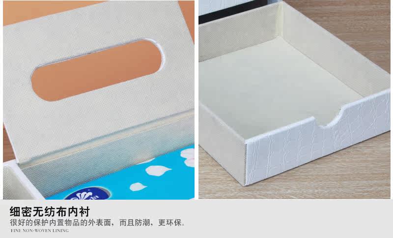 丽然创意皮革多功能纸巾盒木 抽屉式桌面书本整理收纳盒大 抽纸盒