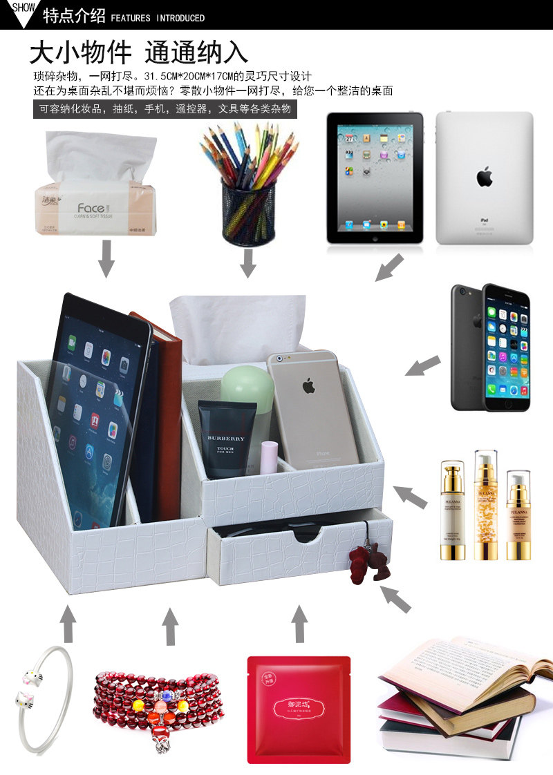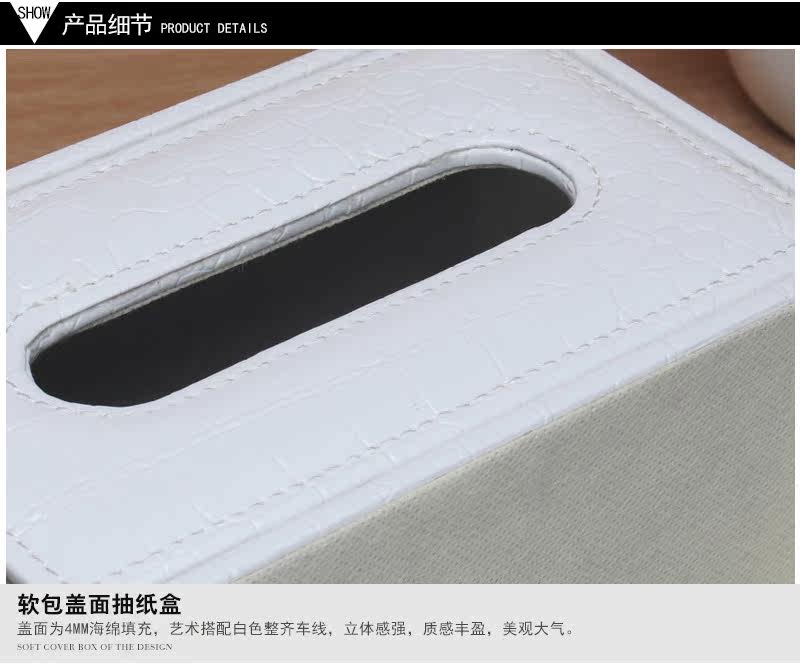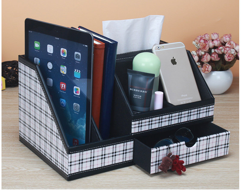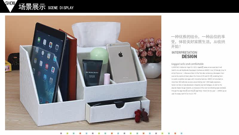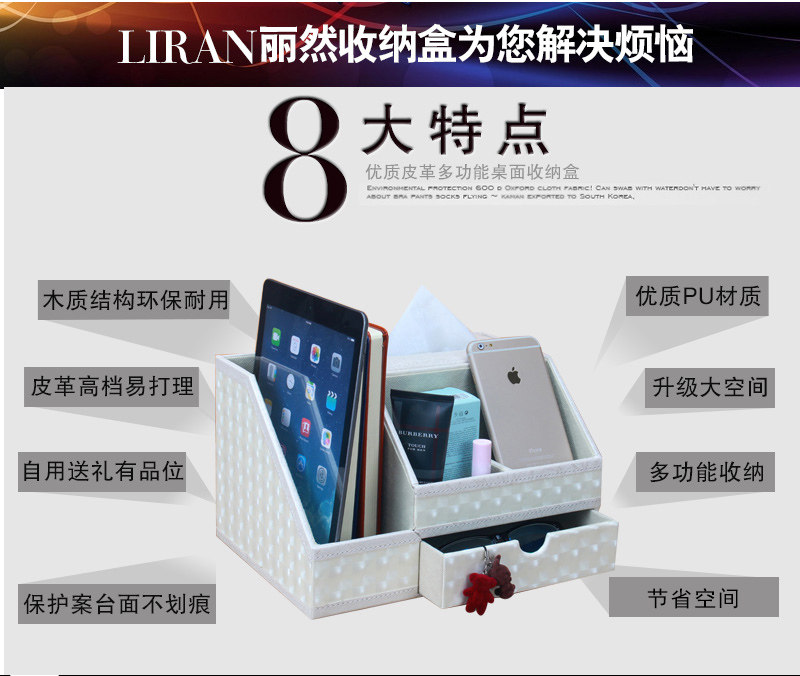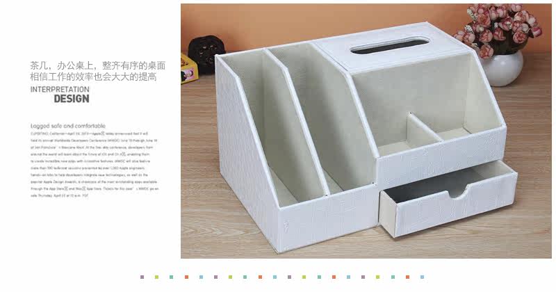 丽然创意皮革多功能纸巾盒木 抽屉式桌面书本整理收纳盒大 抽纸盒