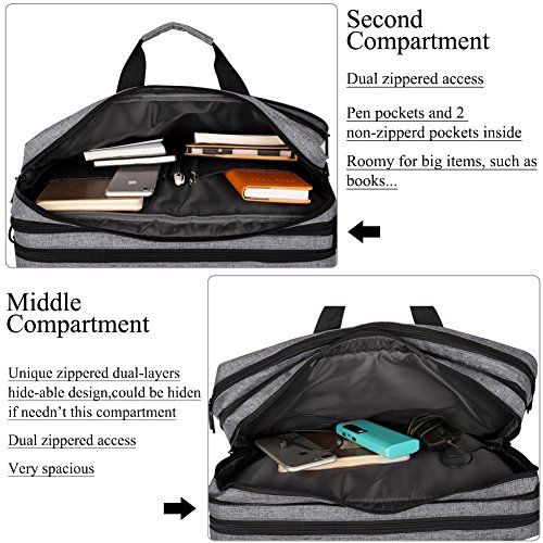 -. Feature : Huge Roomy: reasonable spacious multi-compartment design with various pockets for tablet,books,phone,wallet,pens etc / Extremely Protective: the laptop compartment with velcro strap and thick soft foam padding provides extra protection,that effectively absorbs accidental bumps, reduces damages caused by impacts, and protects your computer from scratches. / Very Comfortable: detachable single shoulder strap and Dual sturdy long handles for long-time comfortably carrying, and could fixed firmly on trolley case/suitcase with back belt. / Easily Convertile:used as a backpack or easily converted to a shoulder bag when back shoulder straps are hiden in back compartment / Bag Size: 46CM x 32CM x 15CM(18.1x12.6x5.9inch),Laptop Compartmen Size:43CM x 28CM x 5CM(16.9x11x2inch).Fits most up to 15.6, 16 inch Laptop / Notebooks / MacBook / Ultrabook /Chromebook ( Apple Macbook / Acer / Asus / Dell / Fujitsu / Lenovo / HP / Samsung / Sony / Toshiba etc.).may not snugly fit all computers due to variations in the sizes of different models