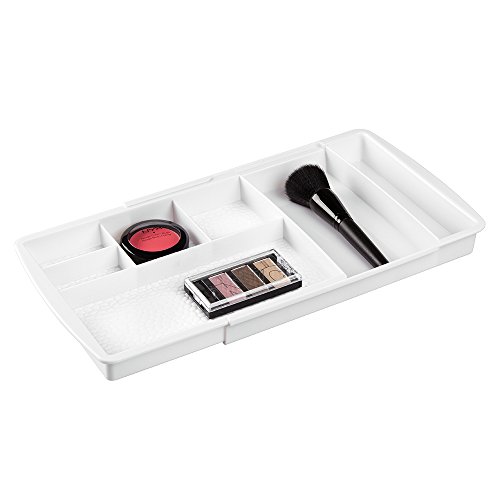 InterDesign Rain Expandable Cosmetic Drawer Organizer for Vanity Cabinet to Hold Makeup, Beauty Products - White