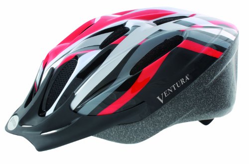 Product Description Ventura Sport Helmet.Plastic Microshell with integrated safety foam.11 big vents for great air circulation with fly nets.Removable visor .Easy-adjust RING System.Great multi-color design with relective paint 0