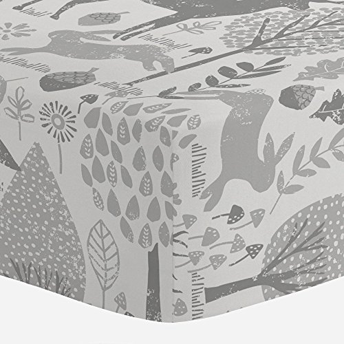 Carousel Designs Gray Woodland Animals Crib Sheet - Organic 100% Cotton Fitted Crib Sheet - Made in the USA