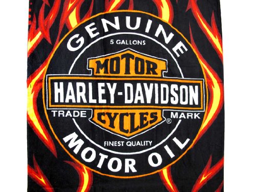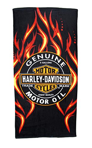 Harley-Davidson Oil Label and Flames Beach Towel 30 in. X 60 in.
