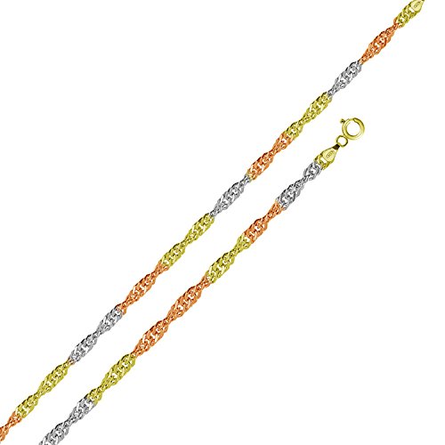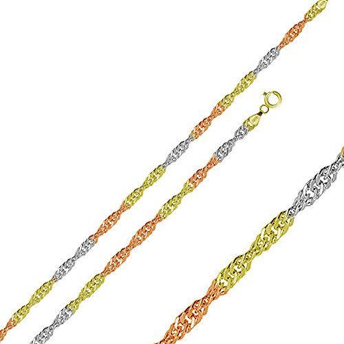 -. Title : 1.5mm Sterling Silver Italian Necklace Tri-Color Singapore Chain (16, 18, 20 Inch)