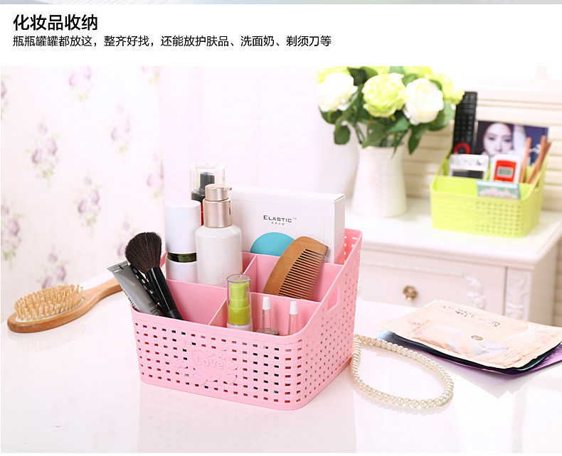 多格桌面收纳盒 化妆品整理盒梳妆台储物盒加厚塑料办公杂物收纳