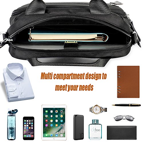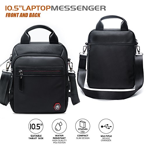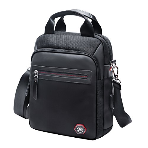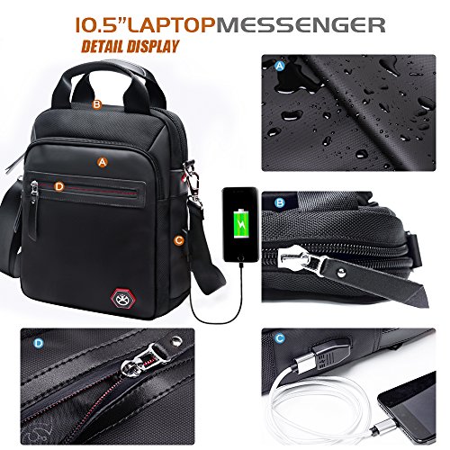 -. Feature : Material: Made of high density nylon fabric, black color, water resistance material can well protect your belonging inside, anti-broken zip and buckles, every stress point is double reinforced, which make the bag sturdy and durable, . / USB Charging Port: The shoulder pack is with USB charing port, can charge mobile, tablet, ipad, or other electronic device easily without opening the bag, a must and the best choice for your business trip, working, school and daily life, / Structure and Multi-functional: The vertical sling bag is with 3 zipper pockets in front, 1 anti-theft zipper pocket at back, we also design pen and card slots and 1 zipper pocket inside the bag. Roomy compartment can organize your belongings well. The main pocket is padded for tablet which can protect your tablet perfectly. / Utility: The satchel bag is great for business trip, school, traveling, and daily life, free your hands. / Classic and Economic Style: It's cool that it looks like simple but it can be used as a sling bag, crossbody or handbag, light weighted. Shoulder belt is adjustable, fit for most people. Leather handle is very soft and comfortable to hold.