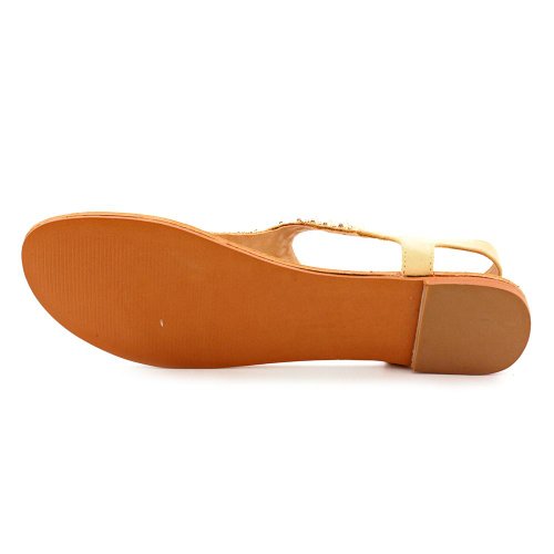 - Feature : T-strap construction with studs / glistening rhinestone trim down front / Man-made upper / Man-made sole / Man-made lining
