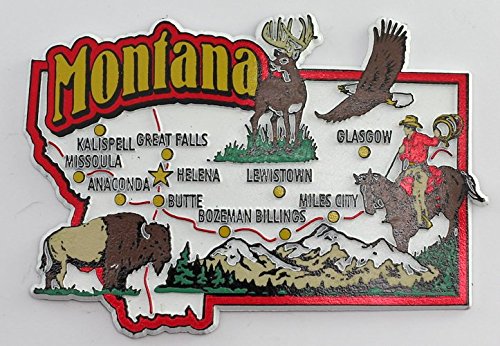 Montana State Map and Landmarks Collage Fridge Souvenir Collectible Magnet FMC