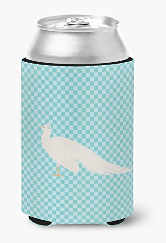 Caroline's Treasures BB8100CC White Peacock Peafowl Blue Check Decorative, Can Hugger, Multicolor