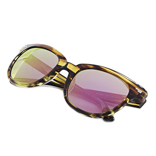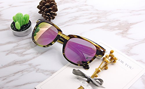 (SH011) Hourvun Retro Sunglasses Polarized for Men Women Round Mirror Sunglasses (grenn patten, pink)