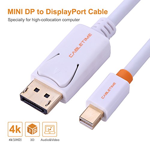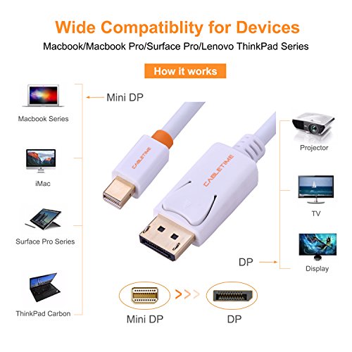 CABLETIME Mini DP to DP cable connects your device with Mini DP/mDP/Thunderbolt port to larger display or monitor with DP/Displayport port for higher resolution and better viewing experience;