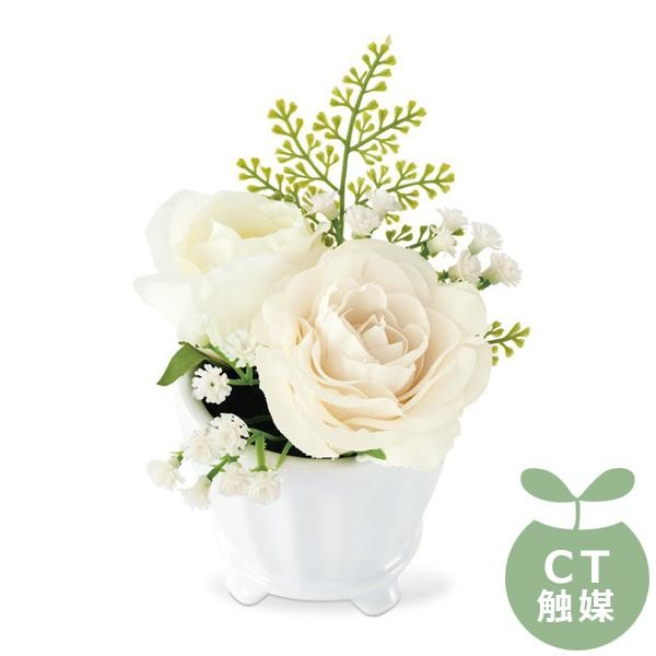 | アーティフィシャルフラワーはCT触媒加工が施されているので、置いておくだけで「消臭」、「防汚」、「抗菌」の効果があります。華やかな中にもピュアな雰囲気を兼ね備えた上品なバラのアレンジメントは、贈り物にも最適です。 |