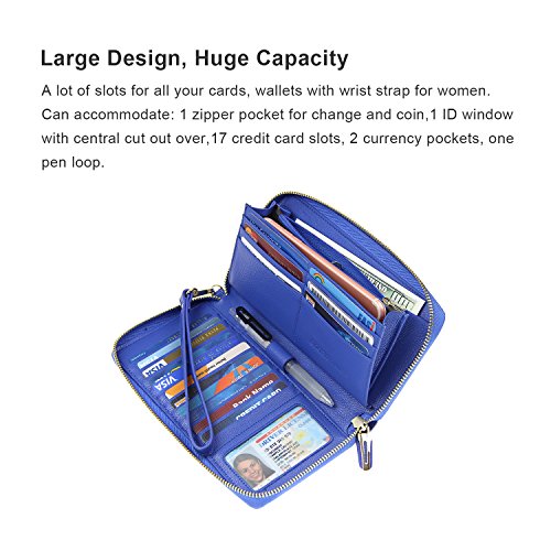 -. Feature : ★ RFID FUNCTION - Our RFID wallets are equipped with advanced unique proP.R.Ietary blocking material, which blocks RFID signals and protects the valuable P.R.Ivate information stored on RFID chips from unauthorized scans. / ★ TRAVEL WALLET RFID - RFID wallets for women, genuine leather and RFID blocking material.1 zipper pocket for change and coin,1 ID window with central cut out over,17 credit card slots, 2 currency pockets, one pen loop, this wallet is suitable for cash, coins, cell phone like as iphone7 plus, passport, pen, checkbook and removable wrist strap. / ★ PRACTICAL - It's very nice, and allows you to easily carry it. Great wallet with a wristlet strap, fit iPhone 6 Plus or iphone 7 in here comfortably with all of your cards. You can use it all the time it's so easy to carry around. Large wallet for women, stylish design and huge capacity. Very practical worth having. / ★ COST-EFFECTIVE - Classic black wallet, Luxury soft leather and zip around style. For your own use or gifts is the best choice. Reflecting high-end taste. Reasonable P.R.Ices, big brand enjoyment. / ★ GUARANTEED - We know you'll love our wallet as much as we do, if you're not 100% SATISFIED, let us know and we will make things right: full refund or a free replacement, whichever you would prefer.