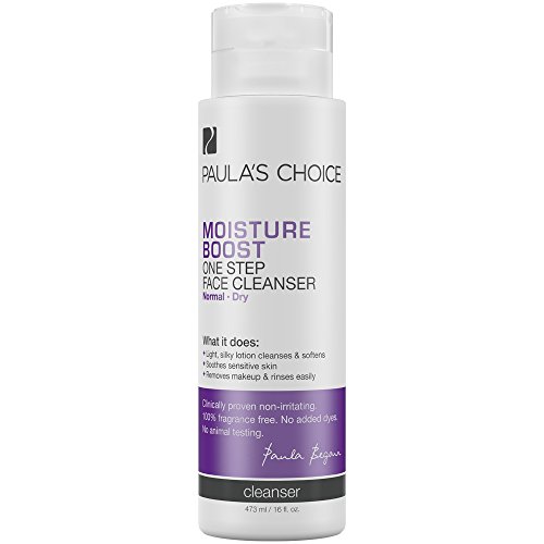 - Paula's Choice Moisture Boost One Step Face Cleanser renews and rejuvenates as it cleanses and rinses cleanly, leaving no residue. This lightly lathering, milky cleansing lotion feels supremely silky but quickly removes all makeup including eye makeup.