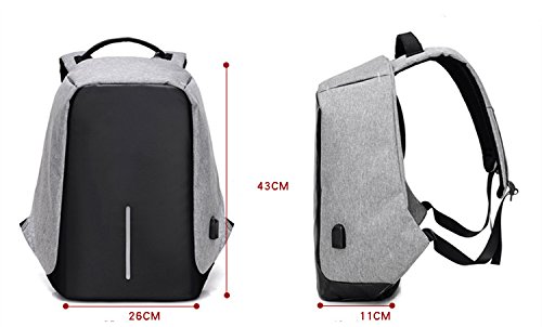 Smart Backpack Size: 10.2''*4.3''*16.9''Inches(L*W*H) It has 1 * main bag 1 * purse bag 1 * computer bag 1 * mobile phone bag 1 * rechargeable baby bag 2 * camera bag 1 * flat bag to meet your daily needs。Laptop compartment holds up to 15.6 inch laptop