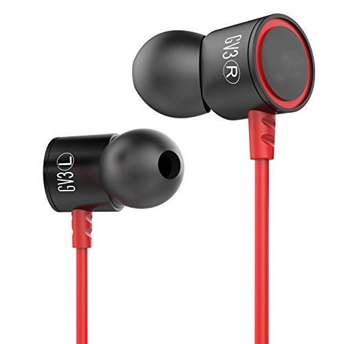 E-BOUR Sports Earphone for Running Gym GV3 Sweatproof In-ear Earbuds comfort-fit stereo Earphones with Microphone for smartphones like Iphone 5 6 6plus ipad laptop like macbook MP3 MP4 Black-Red
