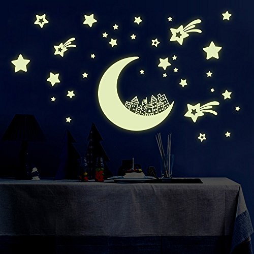 -. Title : It Is Said That There Is a City on the Moon, Stars and Moon Diy Luminous Nursery Room Living Room Wall Sticker