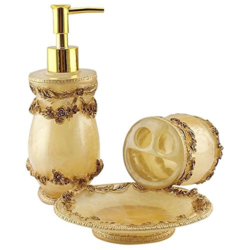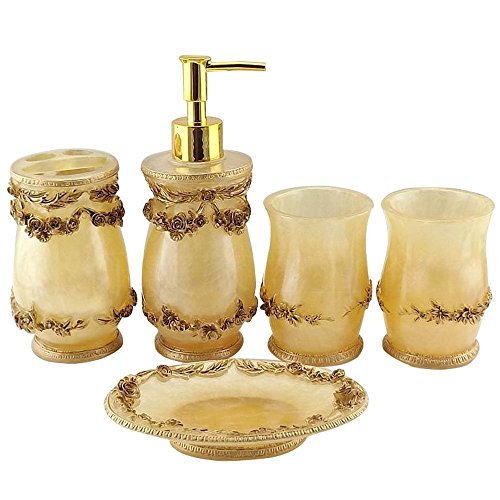5PCS Vintage Classic Luxury Bathroom Bath 3D Decor Accessories Collection Set for Hotel & Home with Soap dispenser, Toothbrush Holder, Toothbrush Cup, Soap Dish
